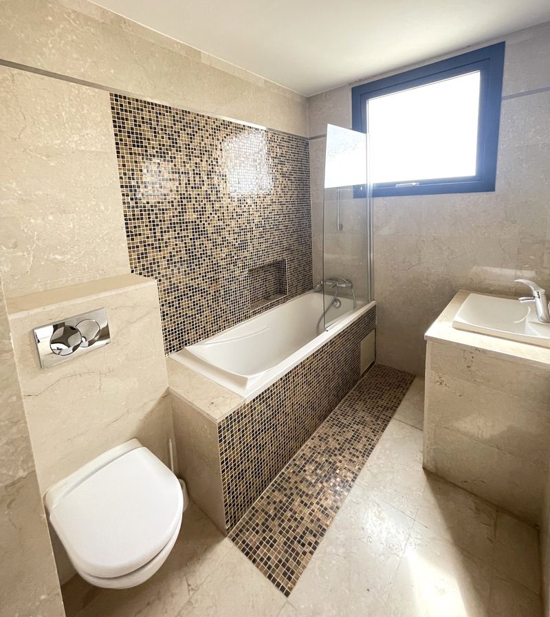 L’appartement est composé de 2 chambres dont une avec salle de bain, d’une toilette visiteurs, d’un salon et d’une cuisine.